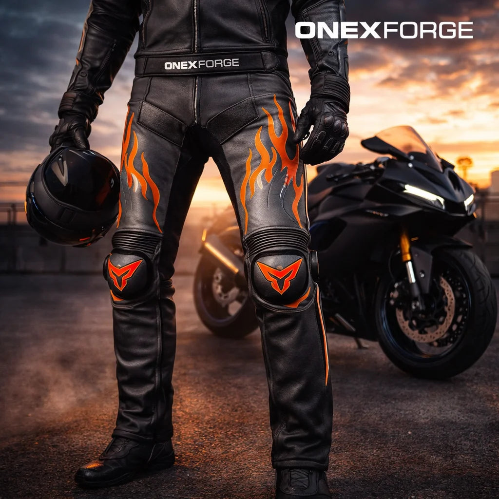 Crafted from 1.3–1.4mm premium full-grain cowhide leather, these pants are engineered for aggressive performance with CE Level 2 certified protection, race-prepped ergonomics, and reinforced seam construction. Micro-perforated zones ensure breathability, while articulated stretch panels maximize flexibility on every lean, shift, and swerve.